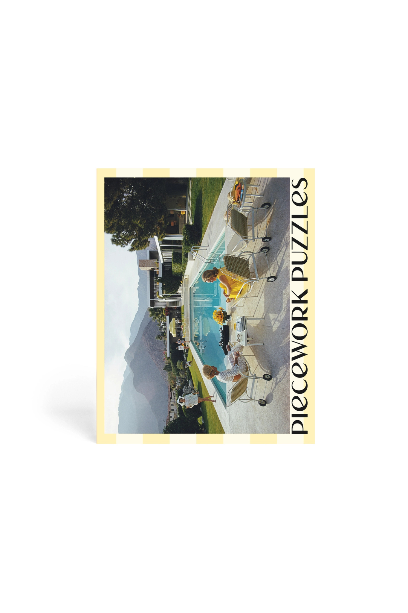 Poolside Gossip: Featuring Slim Aaron’s best-known photograph, Poolside Gossip is widely revered as the quintessential image of midcentury style and design. Packaging features a show-stopping cabana stripe.