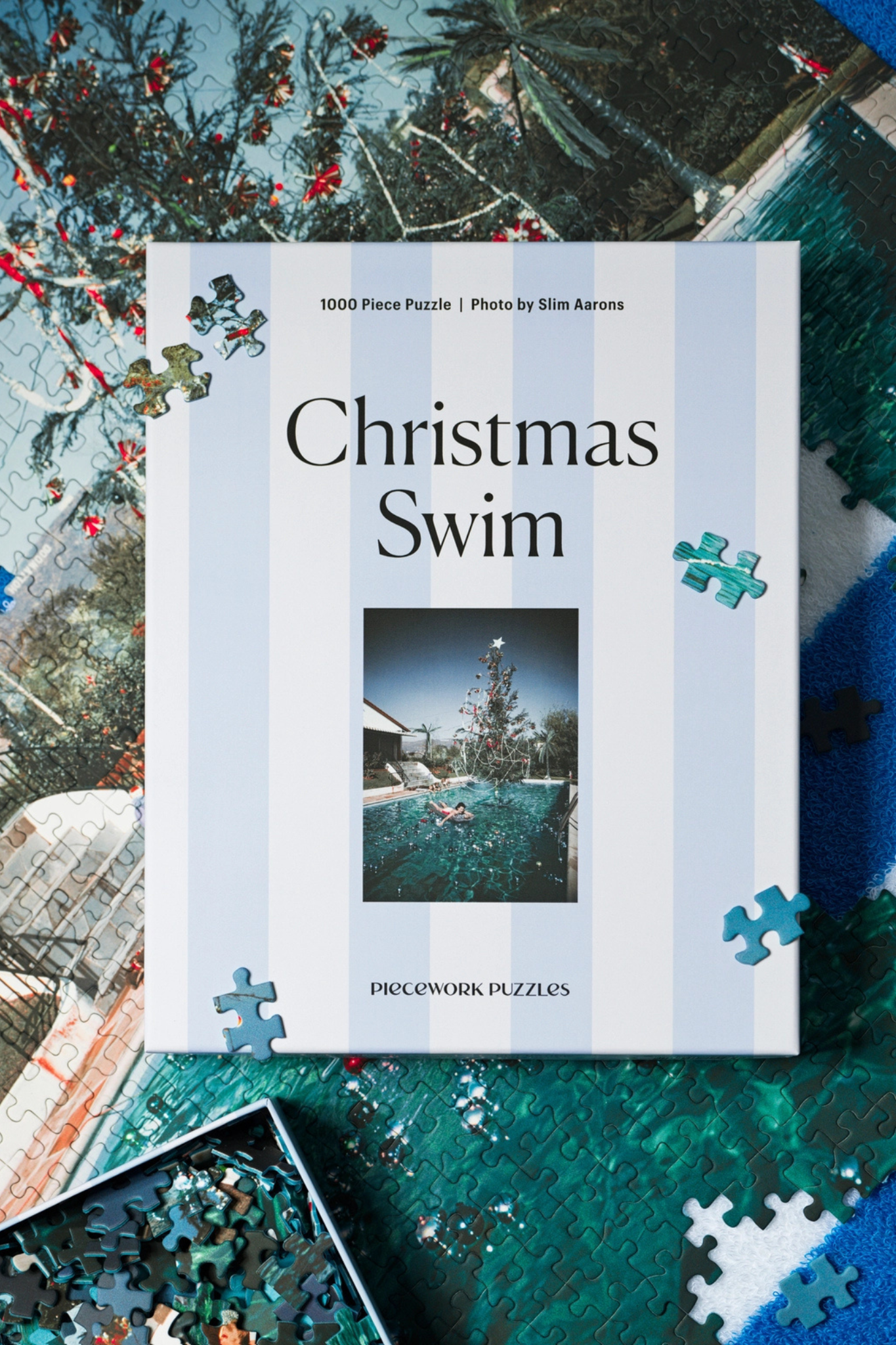 Christmas Swim: one of Slim’s most iconic holiday shots of his wife Lorita floating about Los Angeles in 1954. With packaging featuring an iconic cabana stripe and an image that will feel festive year-round, Christmas Swim is sure to be a hit.