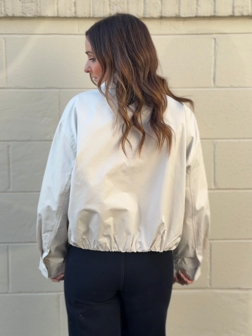 Throw on this bone-colored bomber and instantly level up your layering game. The oversized cut gives you that coveted relaxed vibe, while the zip front makes it ridiculously easy to style over literally anything—your favorite dress, weekend jeans, you name it. Clean lines and neutral tones mean this jacket plays well with every piece in your closet. Effortless cool, no overthinking required.