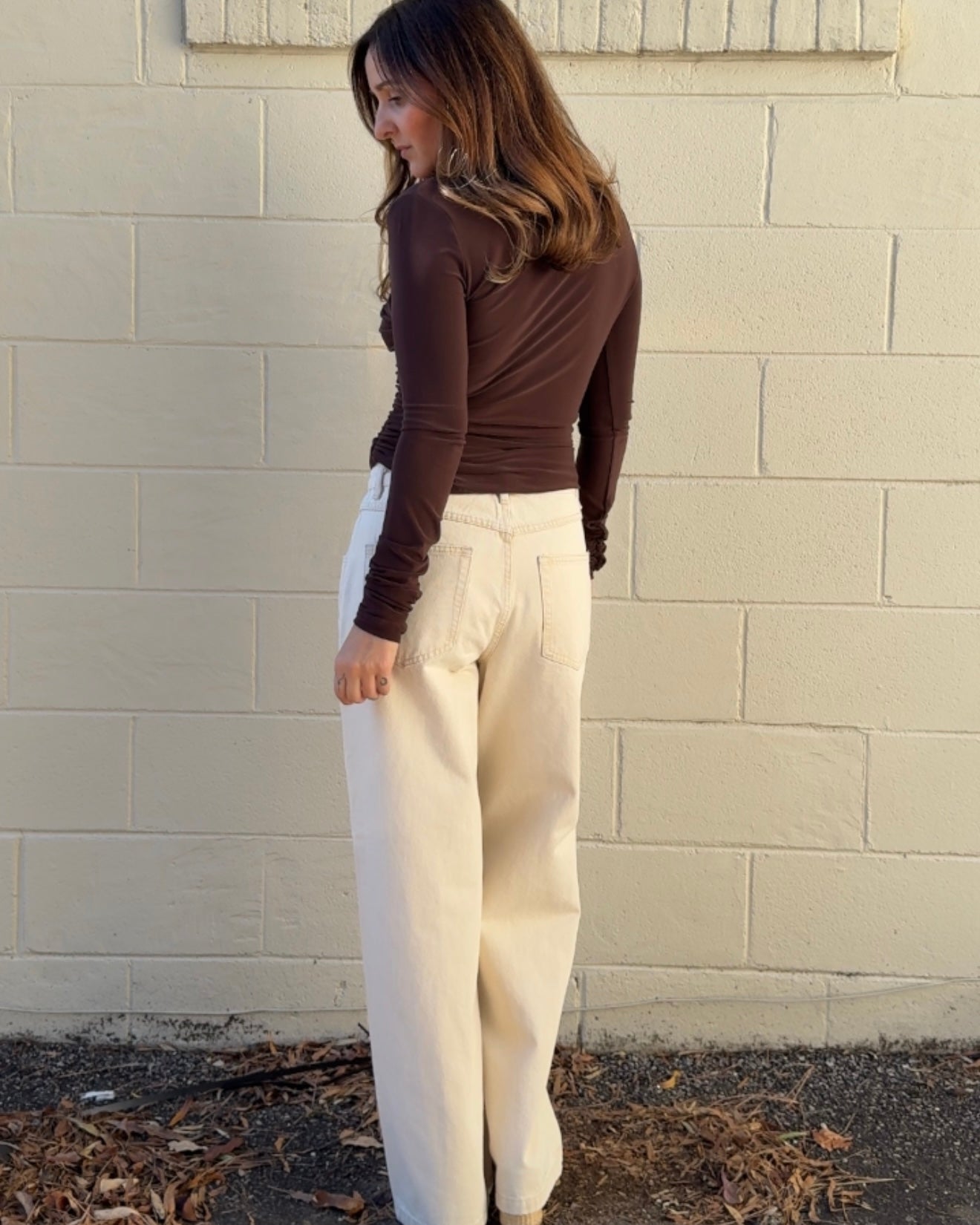 Introducing the Chana Jeans—your new go-to for effortless cool. These cream-colored wide-leg beauties feature a relaxed, low-rise fit that's all about comfort without compromising style. Rock the dual closure system with a zip fly and button for secure, versatile wear, plus a handy drawstring tie at the waist for that perfect fit. With roomy pockets and a loose silhouette that moves with you, these jeans are ready for whatever your day throws your way. Dress them up or down—either way, you're winning.