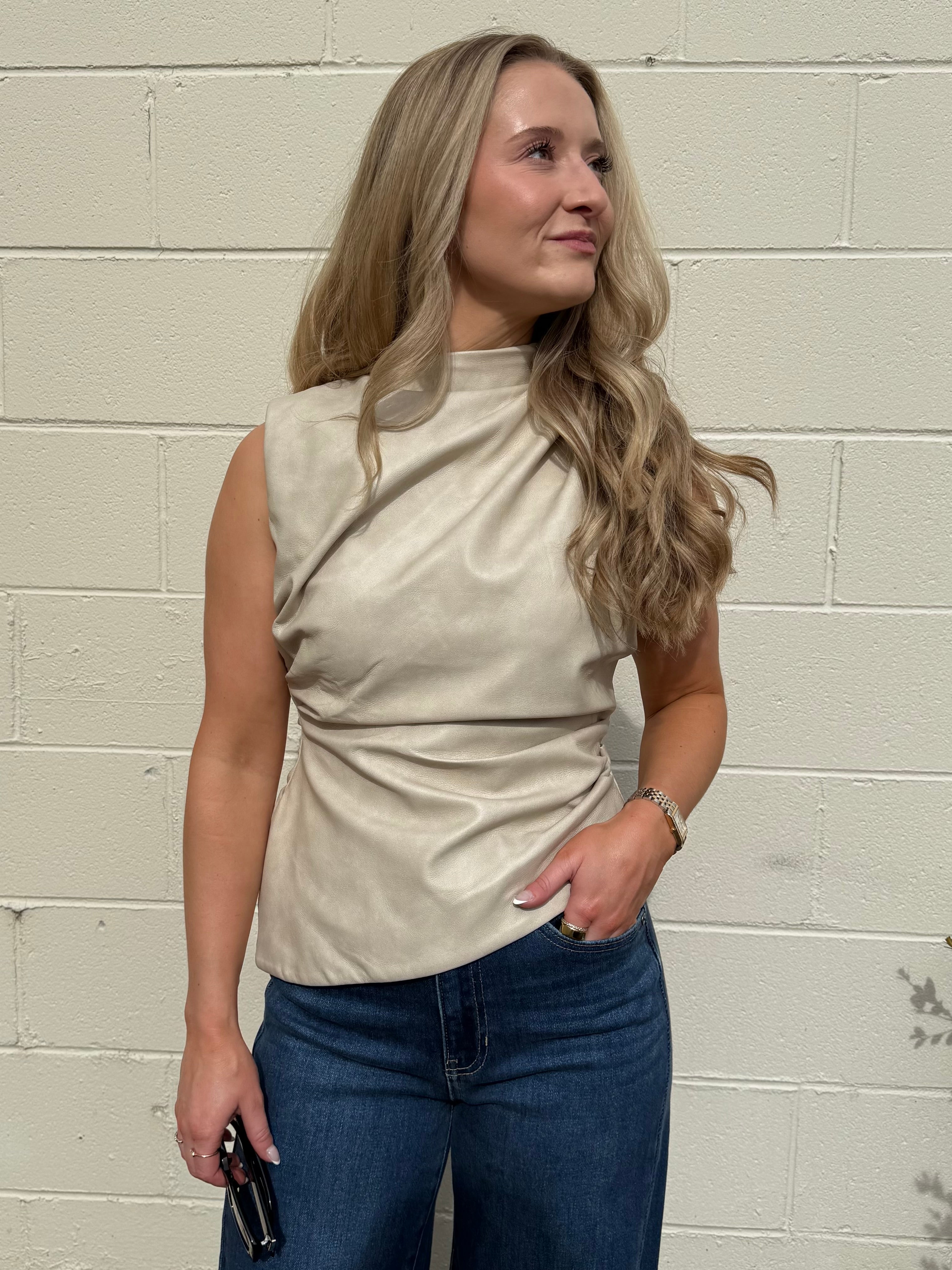 Meet the Kennedi Top—your new wardrobe essential in a gorgeous beige shade! This chic high-neck piece flatters every frame with its thoughtfully ruched sides that create beautiful definition. Slip it on with ease thanks to the back zipper, then rock the playful asymmetrical hem that keeps things interesting. Wrapped in supremely soft, breathable fabric, this top is as comfortable as it is stylish, making it perfect for everything from coffee dates to casual nights out.