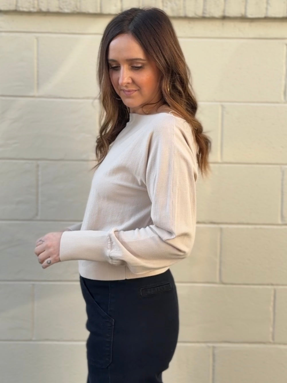 The Sabina Sweater is your new spring essential—lightweight enough to layer or wear solo, with a chic boatneck neckline that feels effortlessly put-together. Long sleeves and a blousey silhouette keep things relaxed and comfortable, while the ribbed fitted waistline cinches just right for flattering definition. Perfect for those in-between weather days when you want cozy without the bulk.